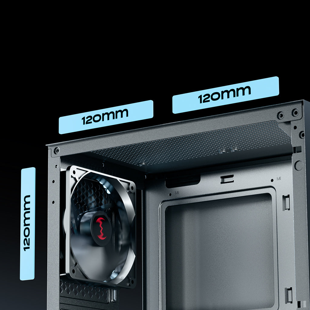 Equipped with a pre-installed 120mm rear fan, the design ensures efficient heat exhaust and consistent airflow across vital components, contributing to optimal thermal performance.