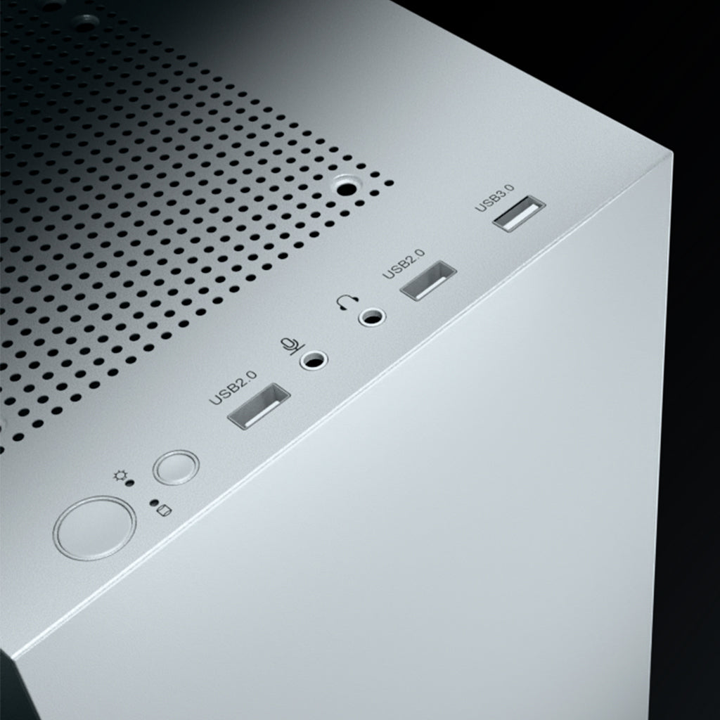 This chassis features a high-speed USB 3.0 port for rapid data transfers, 2x USB ports for peripherals, and dedicated headphone and mic jacks for uninterrupted audio.