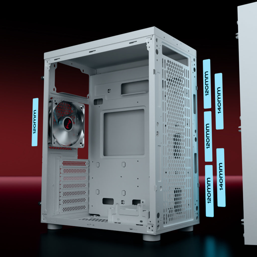 Includes a pre-installed 120mm rear fan with room for additional front fans, ensuring enhanced cooling efficiency.