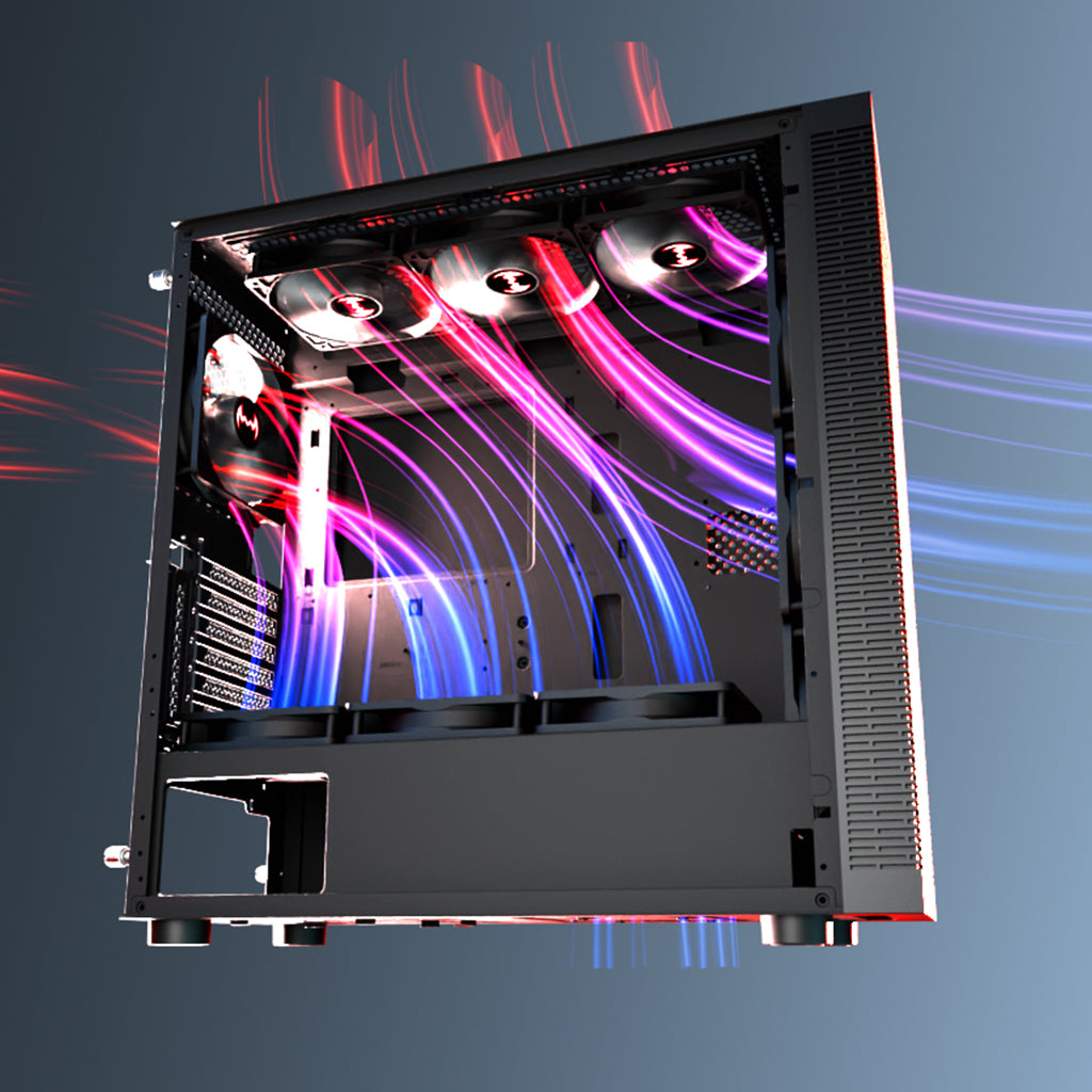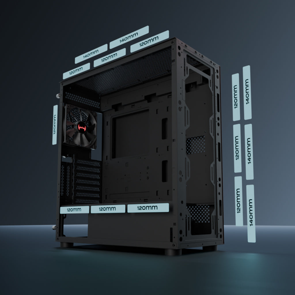 Pre-installed with a 120mm rear fan and equipped with space for additional front fans, this chassis enhances airflow for maximum cooling efficiency.