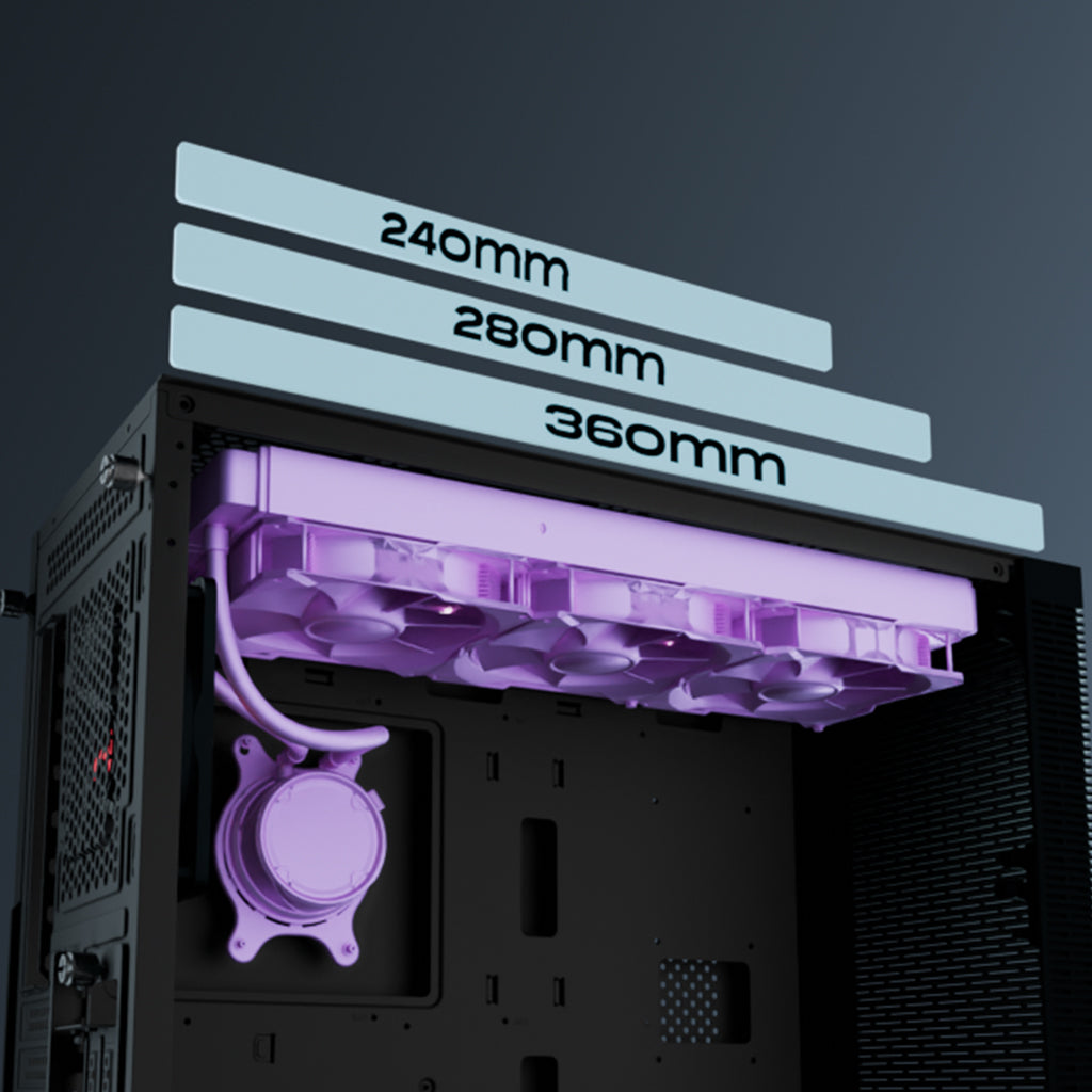 Designed for superior cooling, it supports up to 360mm AIO coolers on the top and front, ensuring maximum performance and efficient heat dissipation.