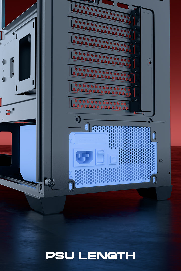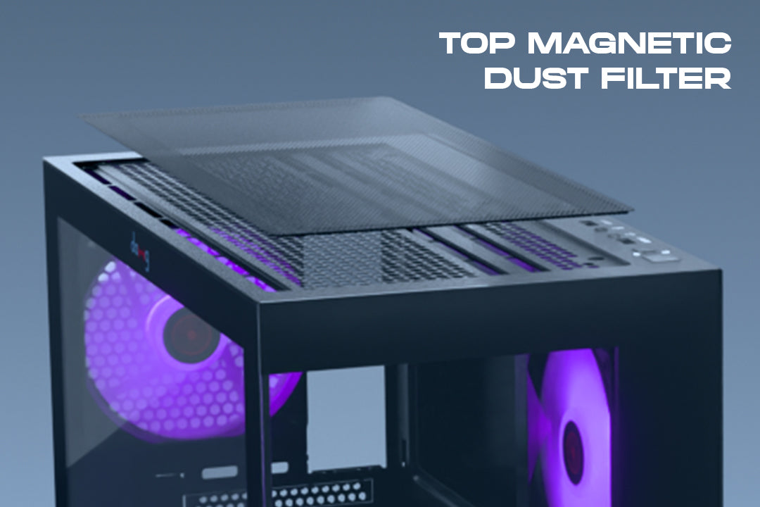 Supports up to a 250mm(Max.) bottom-mounted PSU with top magnetic and bottom magnetic dust filters for optimal airflow. The wrap-around glass design showcases your build, while USB 3.0, dual USB port, and audio(Headphone+mic) jack ensure easy connectivity.