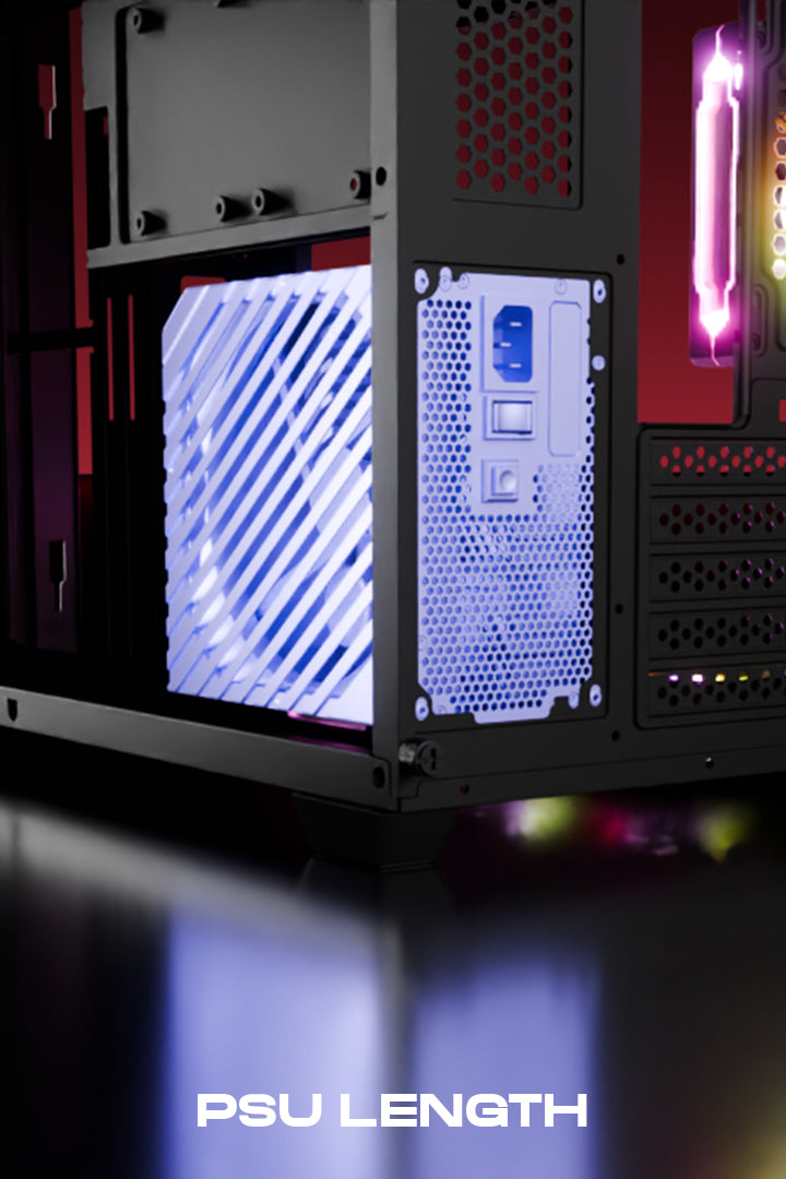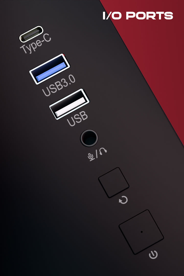 Supports upto a 240mm PSU in a dedicated chamber for a clean look, with bottom magnetic dust filters for optimal airflow. The seamless three-sided glass panel showcases your build, while USB 3.0, a USB port, Type-C, and an audio(Headphone+mic) jack ensure easy connectivity.