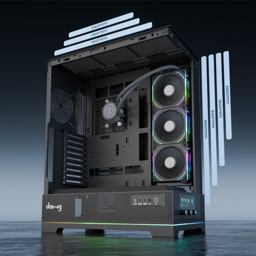 Accommodates AIO coolers up to 360mm with display on the side and space for 360mm on top and 480mm on the side, delivering optimal cooling and peak performance!